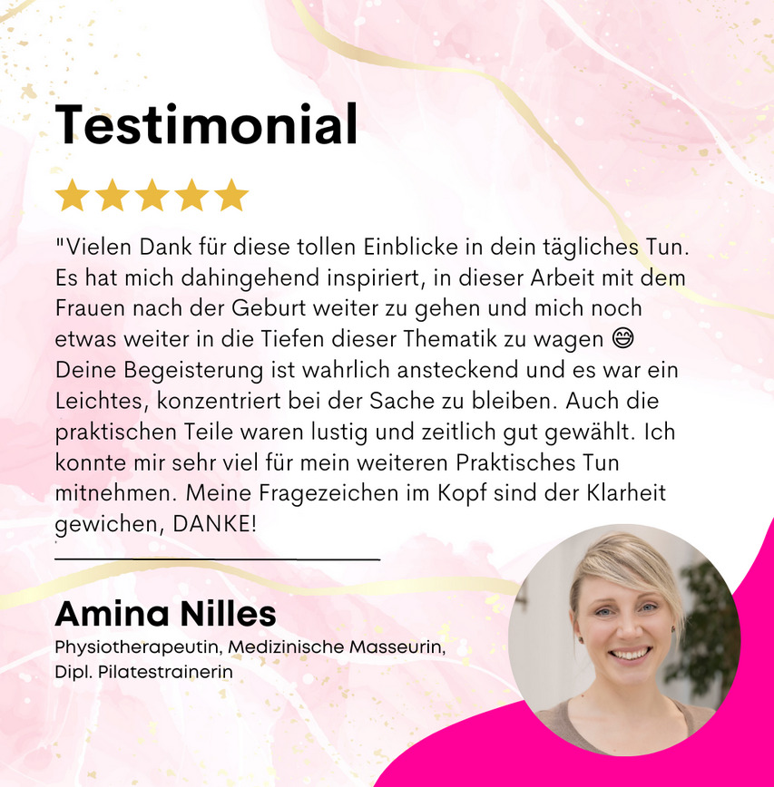 Wenn du Probleme hast wie: sich unfit fühlen; Müdigkeit; Schwangerschaft- Still- Mamademenz; Gedächtnis- und Konzentrationsschwierigkeiten; hohe Infektanfälligkeit; Probleme mit entzündlichen Erkrankungen; Rektusdiastase; Beckenbodenschwäche; schwangerschaftsbezogene körperliche Beschwerden, die von Hebamme/Gynäkologe abgeklärt sind und du Bewegung machen darfst; Rücken- und Nackenbeschwerden; Unzufriedenheit mit der eigenen Figur; einige Kilos zu viel auf den Hüften/Rippen, am Bauch,…, dann bist du bei mir genau richtig!